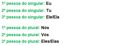 Existem três pessoas do discurso.
