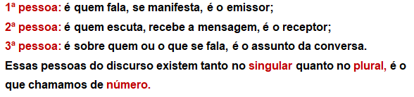 Para iniciarmos o aprofundamento do tema, precisamos, primeiramente, ver cada parte que está relacionada ao verbo e à sua flexão. Começaremos com o número e com a pessoa do discurso.
